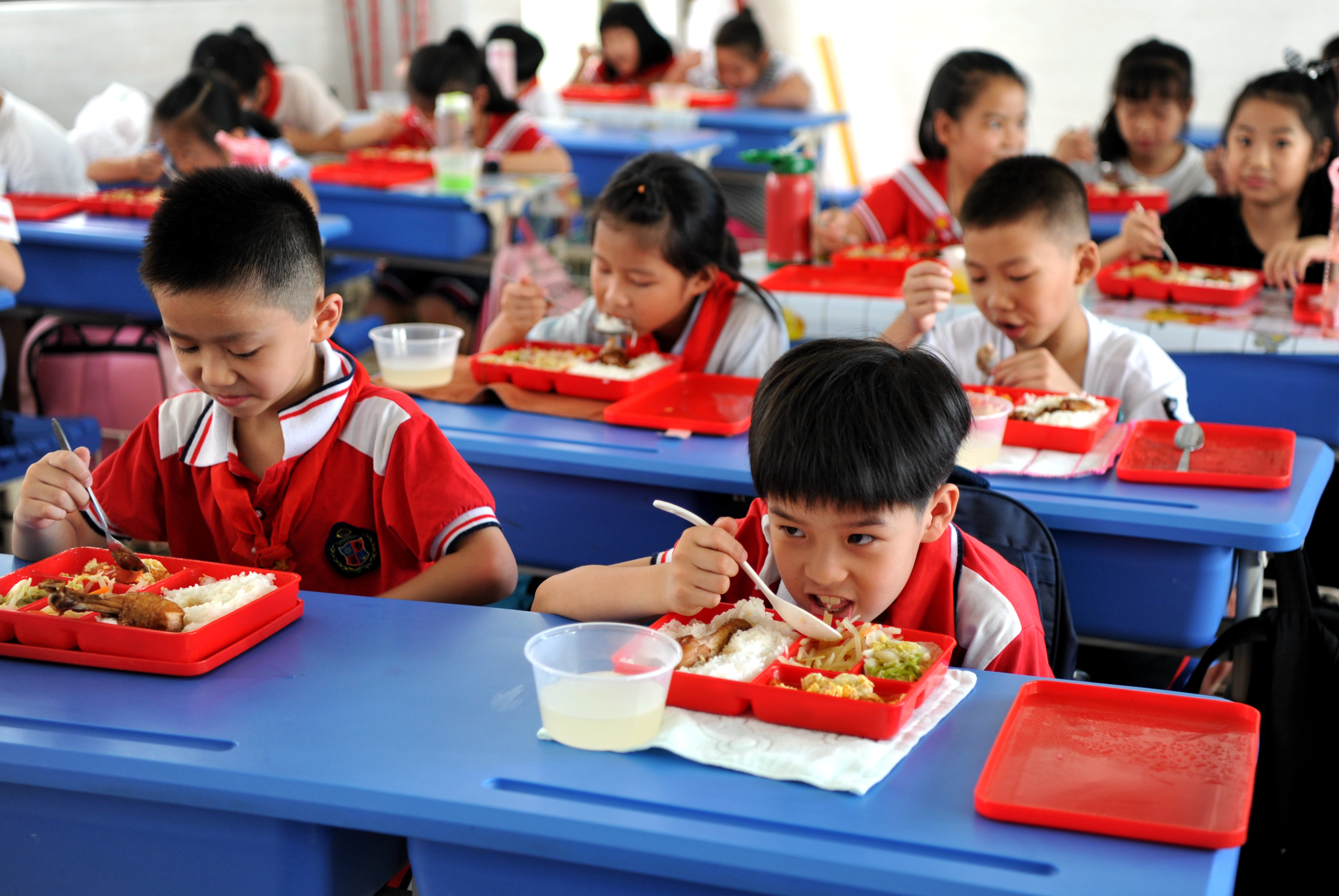近日,福州市高湖小学在校园内开展以“爱惜粮食,从我做起”为主题的“光盘行动”。