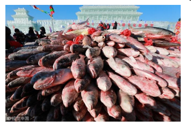 2018年12月28日,查干湖第十七届冰雪渔猎文化旅游节开幕,来自全国各地的众多游客参加了开幕式活动,游客们赏冰灯,看冬捕。开幕式现场好不热闹,众多大鱼堆城墙,供游客够买,拍照留念。