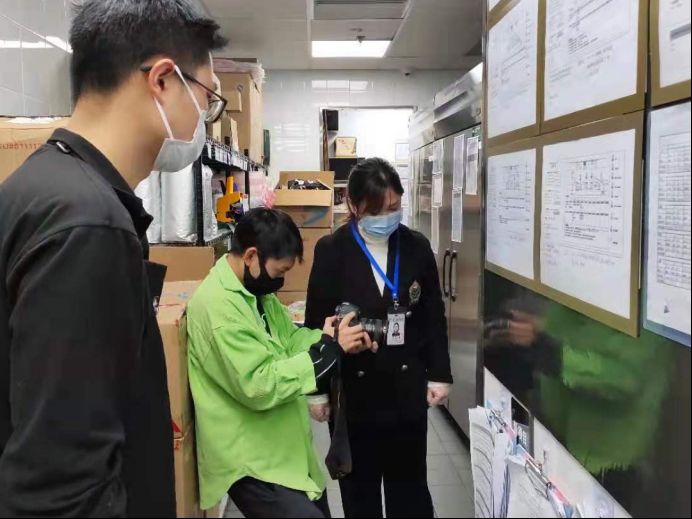 检查中,执法人员重点检查人员健康管理、加工操作、原料控制、食品标签、食品贮存、原料销毁记录等内容,并现场查看了店内监控视频。经检查未发现过期原料和更改保质期的行为。但存在加工区域垃圾桶未加盖、库房货架标识标签不齐、食品和非食品混放等问题。对检查中发现的问题,已责令其限期整改。