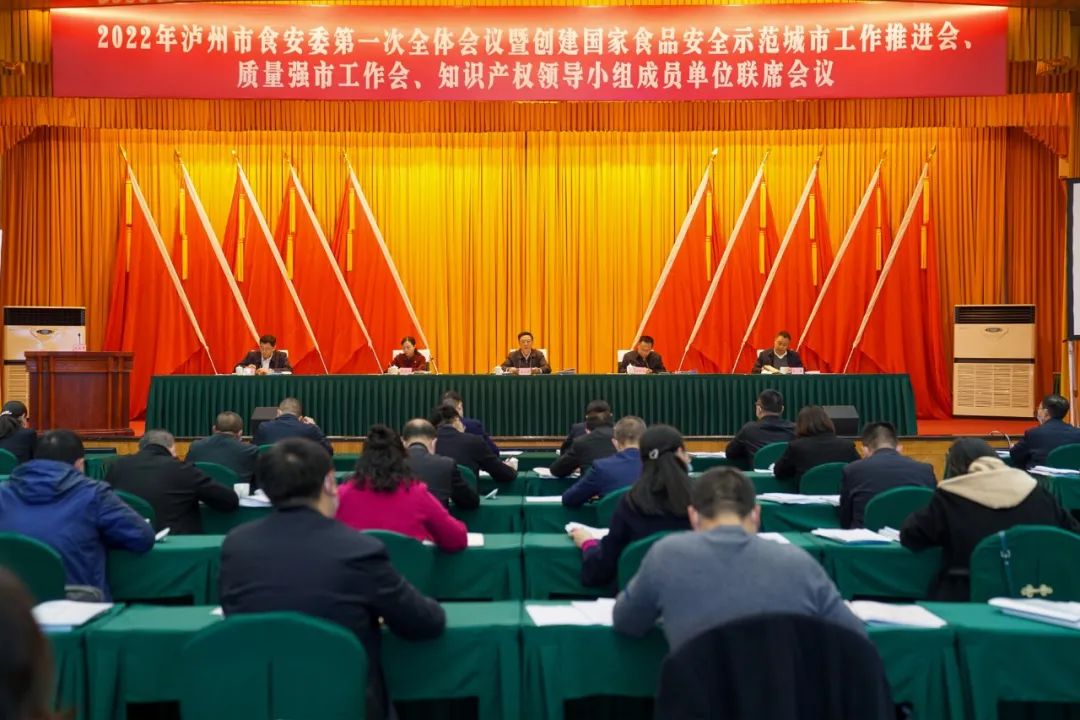 3月2日,2022年泸州市食安委第一次全体会议暨创建国家食品安全示范城市工作推进会、质量强市工作会、知识产权领导小组成员单位联席会议召开,总结2021年工作,安排部署2022年工作。