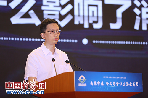 由国务院食安办、中央文明办、教育部等23部门联合主办的主题为“尚德守法 食品安全让生活更美好”的2019年全国食品安全宣传周6月18日正式启动。由经济日报社承办,中国经济网执行承办的宣传周主场活动在京举行。图为科信食品与营养信息交流中心副主任钟凯发言。中国经济网记者 裴小阁/摄影