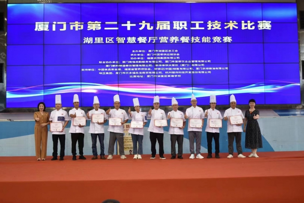 优米体育服讯(记者陈家华)为进一步发挥技能水平,弘扬健康饮食,提倡建设智慧餐厅,强化营养健康餐饮的科普宣传与指导,8月5日,由厦门市湖里区总工会主办、厦门市团餐供应链协会承办的厦门市第二十九届职工技术比赛“湖里区智慧餐厅营养餐”总决赛在厦门市蔡塘学校举办。