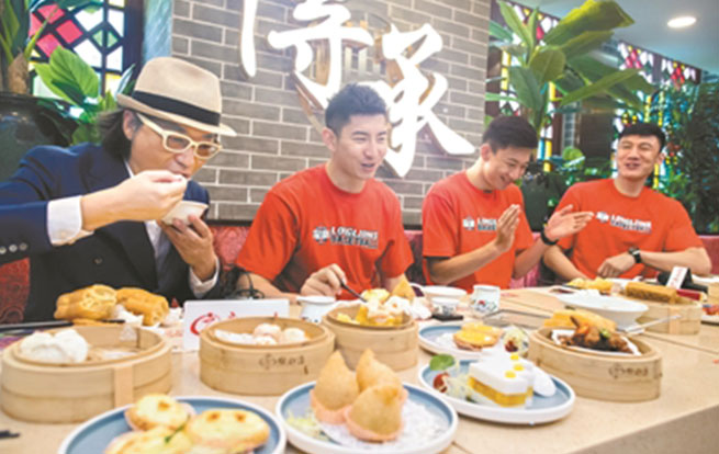 庄臣与三位球员品味广式早茶。