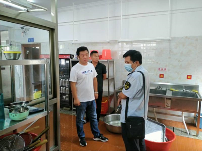 执法人员检查学校食堂