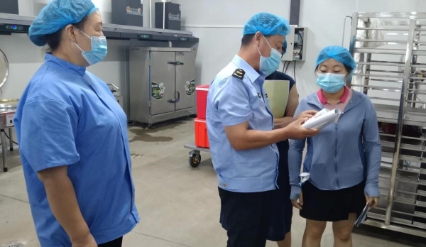 重点检查了保定匠领云厨餐饮配送有限公司的食品安全、后厨卫生情况,是否安装后厨监控,是否严格按要求办理经营资质、配备专门更衣室,对索证索票、进货查验、食品贮存、加工制作、食品配送等重点环节进行详细指导,并查看了相关餐饮服务人员的健康证。