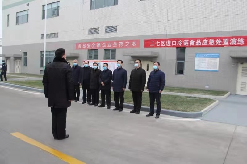 针对这次演练事先设置演练的基本情况是:1月18日凌晨3时从青岛某进出口贸易公司购进的一批进口冷冻牛肉抵达郑州顶益食品有限公司。经过对包装及外环境等进行新冠病毒核酸检测。9时30分,区卫健委报告,称该批次进口冷冻牛肉中外包装一份样品新冠病毒核酸检测呈阳性。由此启动了本次应急处置演练。演练现场设在郑州顶益食品有限公司大院内。1月18日上午9点40分,二七区进口冷链专班副组长、二七区市场监督管理局副局长成辉向现场演练总指挥报告,9点30分收到区卫健委报告,郑州顶益食品有限公司采购的进口冷冻牛肉中,外包装一份样品新冠病毒核酸检测呈阳性的应急处置演练工作准备完毕,请指示。总指挥接到报告后,指示立刻组织相关单位赶赴现场,按照应急处置预案启动处置工作。