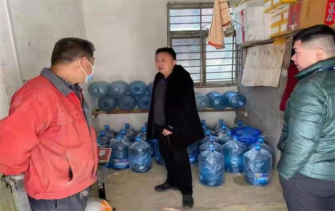近日,侯寨市场监管所接到群众举报称:“在红花寺村一个仓库内有人在生产桶装饮用水,不知道这个桶装饮用水灌装点正规不正规?请你们去看看。”接到群众举报后,侯寨市场监管所立即组织了五名执法人员赶到红花寺村进行查处。按照群众举报的地点,执法人员首先在红花寺村的这个仓库附近进行观察。经过观察,发现这个仓库内有人,五名执法人员迅速进入仓库。